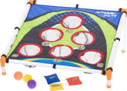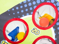 Jocul cu țintă este ideal atât pentru distracția în aer liber în parc sau grădină, cât și pentru jocurile de interior acasă. Copiii pot sta în spatele unei linii marcate și arunca bile colorate sau săculeți către o țintă cu diferite valori de puncte, ceea ce nu doar îi distrează, dar și exersează precizia și concentrarea.