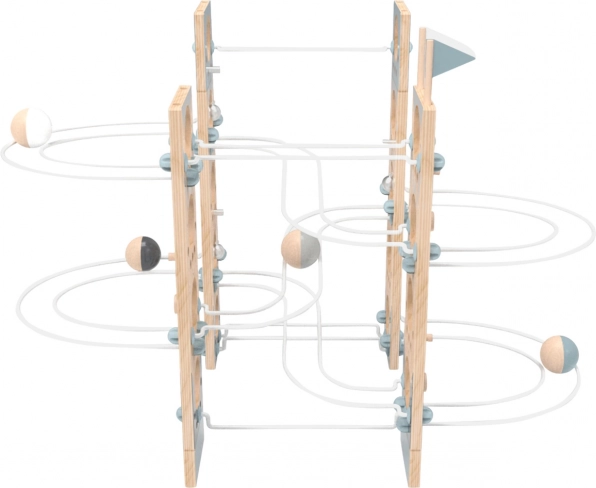 Materialele jucăriei includ placaj durabil și bile din lemn masiv, care prin aspectul scandinav și natural completează stilistic orice cameră de copii. Această pistă este un instrument ideal pentru dezvoltarea creativității și abilităților motrice fine la copii.