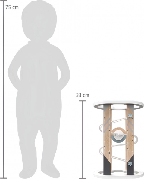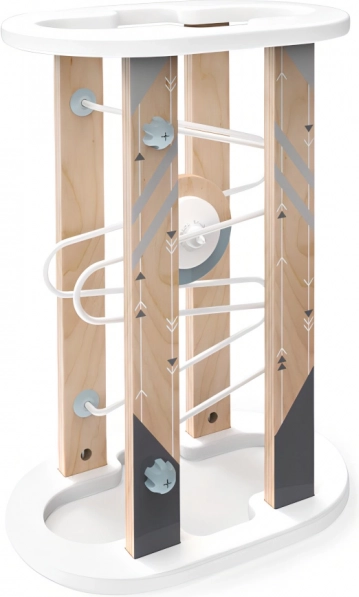 Răsuciți pista ca pe o clepsidră și bucurați-vă de o cursă nesfârșită! Lăsați copiii să descopere fascinanta acțiune a magnetismului, care împiedică discul neastâmpărat să cadă! Construcția jucăriei folosește elemente de îmbinare metalice și din plastic, cu ajutorul cărora pista poate fi ușor asamblată și demontată, apoi depozitată la nevoie. Datorită pieselor de bază robuste din placaj rezistent, jucăria este solidă, stabilă și durabilă. Prin nuanțele sale scandinave și naturale, completează stilat camera copilului. Livrată cu instrucțiuni detaliate de asamblare. Principalele caracteristici: pistă cu disc, asamblare și demontare ușoare, execuție robustă și rezistentă din lemn