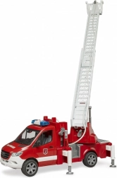 Scara este extensibilă și permite rotirea, în timp ce picioarele de stabilizare asigură siguranța în timpul jocului. Vehiculul dispune de un compartiment deschis care poate servi pentru depozitarea echipamentelor suplimentare de pompieri. Cabina este compatibilă cu figurinele din colecția BRUDER BWORLD.