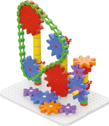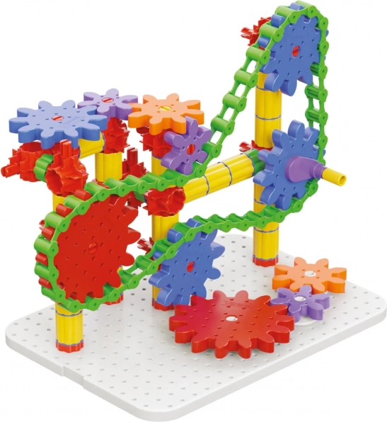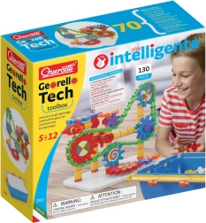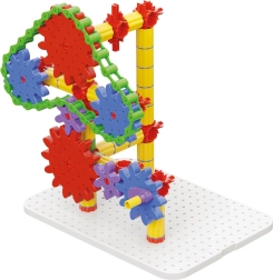 Asamblează diverse angrenaje tridimensionale și transmite mișcarea la distanță cu ajutorul unui lanț. Cu ingenioasa construcție Georello Tech, copiii pot fi familiarizați cu principiile de bază ale mecanicii, își pot dezvolta imaginația și pot învăța într-un mod ludic concentrarea și răbdarea. Culorile vii le trezesc cu ușurință curiozitatea, iar piesele pot fi decorate suplimentar cu autocolantele incluse, care conferă construcțiilor personalitate și le fac și mai captivante. Componentele sunt depozitate într-o servietă practică și ușor de transportat, al cărei capac servește drept bază de construcție. Setul este realizat din plastic de calitate, solid, rezistent și sigur.