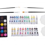 Paletă cu 24 de culori acuarelă, 24 de culori în tuburi, pensule și două palete din plastic – echipare completă pentru tehnici apoase și opace.