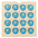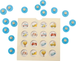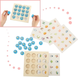 Jocul de memorie din lemn este o alegere excelentă pentru combinarea distracției cu învățarea. Jocul are reguli simple, ușor de înțeles chiar și de micii copii. Este suficient să selectezi o carte, să-ți amintești poziția formelor diferite și să le acoperi cu capace albastre. Apoi descoperă câte două și caută perechi identice!