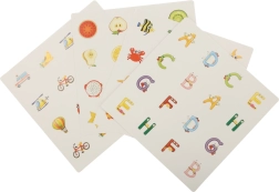 Set de cărți educative cu litere colorate ale alfabetului și ilustrații corespunzătoare. Ajută la învățarea și recunoașterea alfabetului într-un mod distractiv și interactiv.