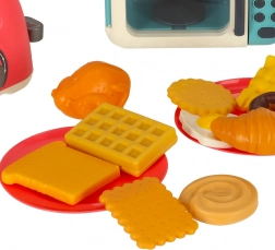 Cuptorul cu microunde în culori vii permite copiilor să imite gătitul real, adăugând jocului o interactivitate captivantă.