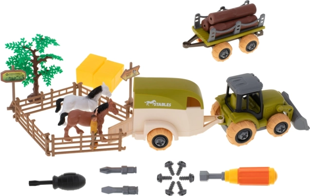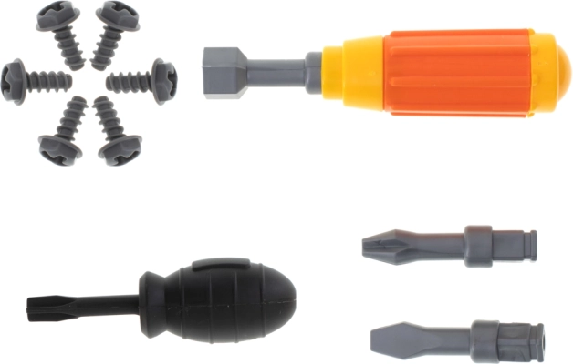 Setul include două unelte cu șurubelniță care permit schimbarea componentelor tractorului și posibilitatea de a asambla și dezasambla diferite elemente.