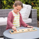Mancala (cunoscută și ca Kalaha) este un joc strategic elegant pentru doi jucători, care combină reguli simple cu o profunzime surprinzătoare. Această versiune din lemn de la Bigjigs Toys oferă o tablă cu finisaj neted și pietricele de sticlă colorate, care invită la joc și exersează motricitatea fină.