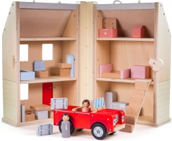 Include 13 piese de mobilier, 2 figurine din lemn și o mașinuță roșie pentru și mai multe povești și interacțiuni.