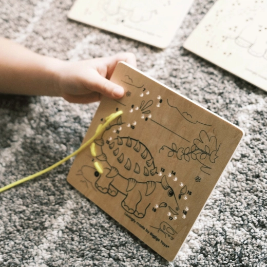 Sprijiniți într-un mod distractiv dezvoltarea abilităților de bază de calcul și a motricității fine a copiilor. Urmând numerele și trecând treptat șireturile prin plăcuțe, pot dezvălui contururile unor imagini variate. Setul include un suport în care puteți așeza placa cu creația finalizată pentru a decora masa sau raftul. Alegeți dintre mai multe modele diferite. Fabricat din materiale de înaltă calitate și obținute în mod responsabil. Principalele caracteristici: 3 plăci cu imagini diferite, 3 șireturi de culori diferite și suport, execuție robustă și durabilă