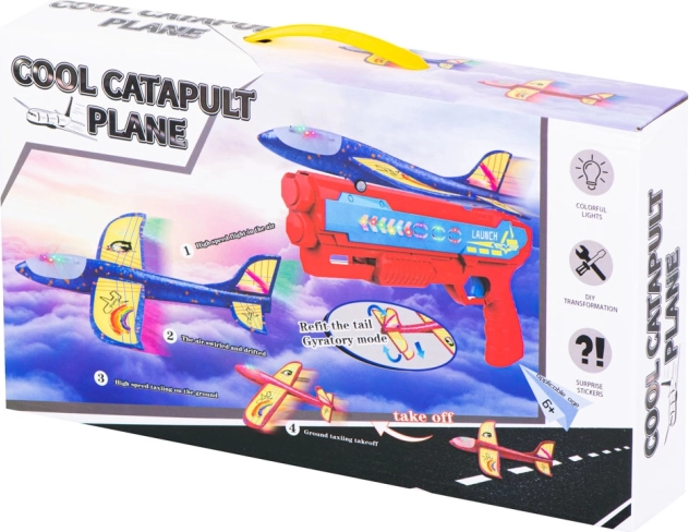 Avionul este fabricat din polistiren expandat și este foarte ușor, astfel încât poate zbura sus și departe. Jocul cu avionul lansator este un mod excelent de a sprijini dezvoltarea abilităților manuale, imaginația și reflexele copilului. Este o alternativă excelentă la jocurile pe calculator, distrage atenția copilului de la perioadele lungi petrecute în fața telefonului sau a televizorului și îl încurajează să petreacă timpul activ. Jucăria sigur va captiva nu doar copiii, ci și adulții. Forma originală și culorile vii atrag atenția copilului și îl încurajează să se joace.