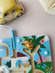 Labirintul magnetic de la Vilac duce copiii în lumea ilustrațiilor delicate ale lui Michelle Carlslund. Cu ajutorul unui stilou magnetic, copiii pot ajuta animalele să-și aducă bilele la locul lor. Această jucărie este distractivă și sigură datorită principiului său magnetic.