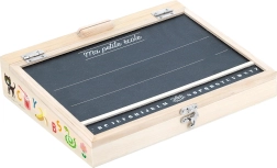 Întoarceți-vă la nostalgia anilor de școală cu fermecătoarea tablă de la Vilac, ilustrată de artista Ingela P. Arrhenius. Această tablă tip dulăpior din lemn masiv oferă o dotare bogată pentru învățarea scrierii, a calculului și a bazelor de engleză și franceză. Cu ajutorul celor 70 de piese din lemn cu litere și cifre, 80 de carduri cu vocabular, 30 de carduri cu exerciții de calcul și 12 carduri de punctaj, copiii învață prin joc. Pachetul include 2 crete, astfel că tabla poate fi folosită imediat.
