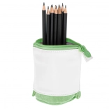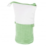 Materialul textil rezistent face față utilizării zilnice și găzduiește pixuri, creioane colorate, markere și o riglă mică fără a ocupa inutil spațiu.