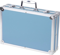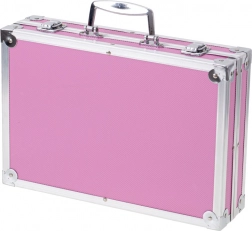 Valiză metal-plastic cu mâner solid și cleme de siguranță care păstrează totul în siguranță. Se transportă ușor la școală, la clubul de arte sau în vacanță.
