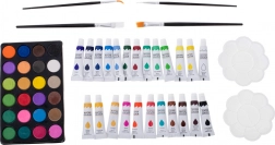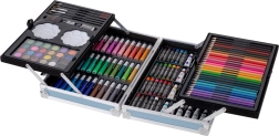 - 33× marker, 28× creion colorat, 4× pensulă, 2× creion, 2× radieră, 2× paletă din plastic, 1× ascuțitoare, paletă cu 24 culori acuarelă, 24× vopsea la tub, 24× pastel uleios, valiză