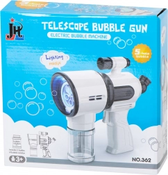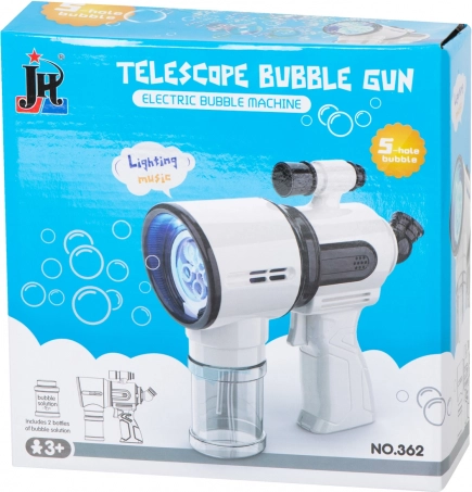Capătul cu cinci inele și ventilatorul integrat generează un flux continuu de balonașe colorate la o singură apăsare a trăgaciului.
