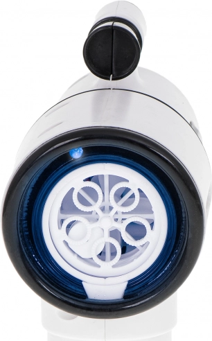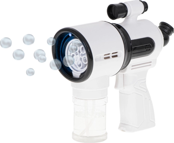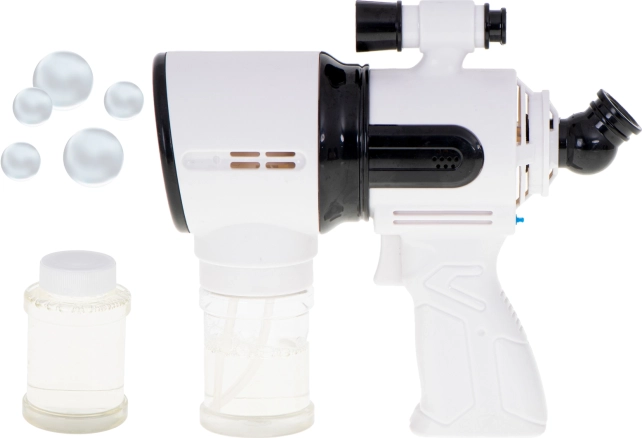 Acest pistol alb pentru baloane este ideal pentru copii de la 3 ani și pentru evenimente în aer liber în familie. Ventilatorul integrat și sistemul cu 5 inele asigură o suflare lină și un flux de zeci până la sute de balonașe la o singură apăsare a trăgaciului. Pentru și mai multă distracție, are iluminare LED și sunete, ce pot fi activate sau dezactivate dintr-un singur buton.