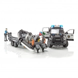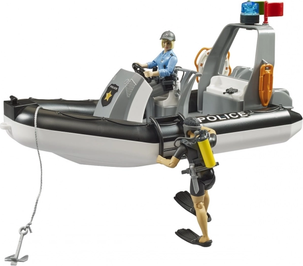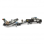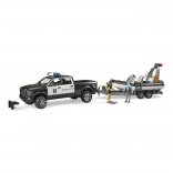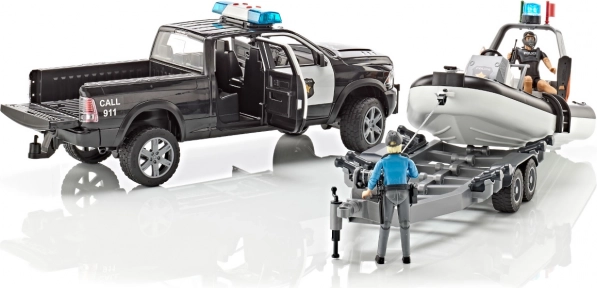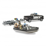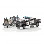 În pachet găsiți mașina de poliție RAM, remorca, barca cu accesorii și 2 figurine (polițistă și scafandru) – totul pregătit pentru o misiune imediată.