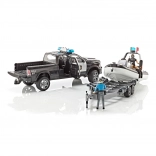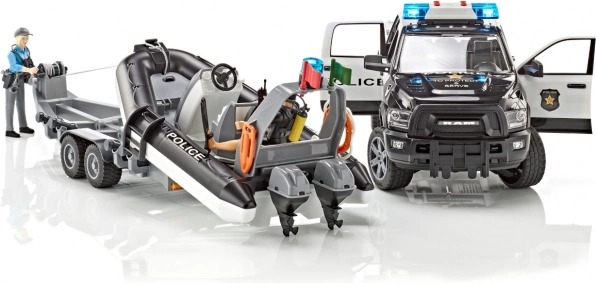 - pick-up de poliție, remorcă, barcă cu accesorii, 2 figurine (polițistă și scafandru)