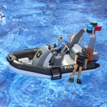 Barca de poliție chiar plutește pe apă, găzduiește până la 3 figurine și, împreună cu scafandrul, face față intervențiilor dificile în cadă sau piscină.