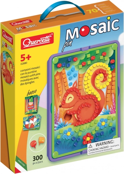 Descoperiți distracția creativă cu mozaicul Quercetti Pin Bosco, care îi ajută pe copii să dezvolte motricitatea fină, coordonarea mână–ochi și gândirea creativă. Setul include 8 carduri tipărite cu motive din pădure, 300 de pini colorati în 2 forme și 6 culori, o placă solidă de înfipt, un cadru cu mâner și un coș de depozitare practic pentru o strângere ușoară.