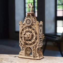 Acest kit mecanic 3D, realizat cu precizie din placaj natural, este nu doar decorativ, ci și educativ. Prin rotirea roții mari, puneți în mișcare transmisia asincronă a limbilor ceasului, pendulul, cocoșul de vânt și alte detalii arhitecturale. Mecanismul bine gândit oferă o mișcare lină și arată clar cum funcționează mecanismele de ceas de bază.