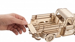 Întoarce-te la epoca mecanicii autentice cu un model din lemn inspirat de pick-up-ul american iconic. Modelul oferă o experiență captivantă de asamblare din 460 de piese tăiate cu precizie și, după finalizare, te răsplătește cu mers realist, direcție și detalii funcționale. Datorită propulsiei pe arc și tracțiunii spate cu diferențial, realizează viraje line și mers stabil chiar și cu încărcătură.