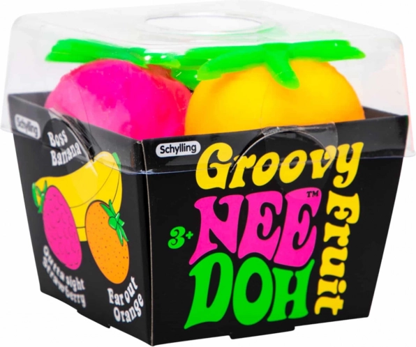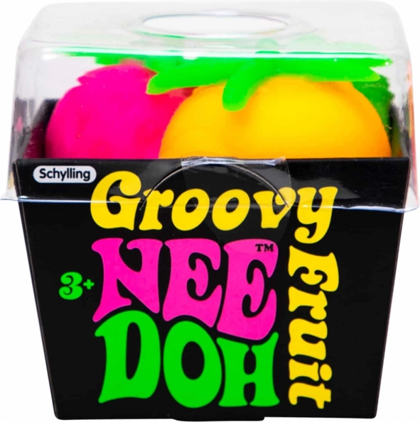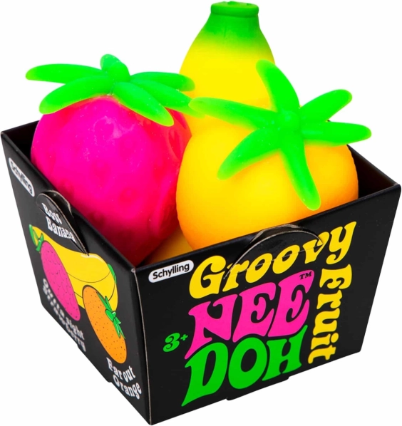 Schylling Groovy NeeDoh fructe de strâns oferă un mod unic de a te bucura de distracție și în același timp de a găsi liniștea. Aceste mingi fructate sunt ideale pentru a te juca pe drum sau ca metodă de alivie a anxietății. Fabricate din material netoxic, care revine mereu la forma inițială. Permite stoarcerea, întinderea și ruperea, ceea ce sprijină concentrarea și atenția. Sunt potrivite pentru copii și adulți cu ADD, ADHD, OCD, autism și anxietate.
