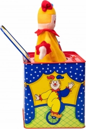 Această cutie muzicală cu clovn atrage prin grafica sa de circ și construcția sa solidă, care promite distracție de lungă durată. Rotirea manivelei generează o melodie, aducând un zâmbet pe fața fiecărui copil.