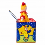 Rotiți manivela și urmăriți cum clovnul sare. Această jucărie este ideală pentru dezvoltarea motricității fine.
