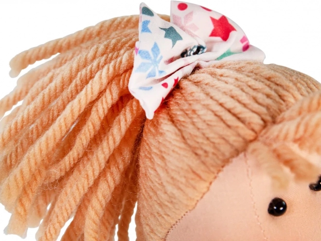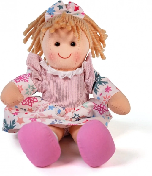 Textilele fine și părul din fire de ață invită la îmbrățișare, iar rochița colorată cu steluțe sprijină percepția culorilor și dezvoltarea imaginației. Joaca cu păpușa dezvoltă motricitatea fină, abilitățile sociale și capacitatea de a îngriji și a ajuta.