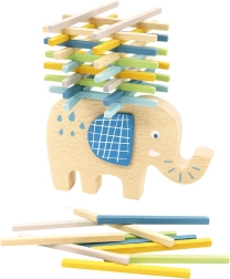 Bino joc de echilibru elefant aduce distracție plină de suspans pentru întreaga familie. Scopul jucătorilor este să așeze treptat bețișoare de culori diferite pe spatele elefantului astfel încât să mențină echilibrul și să îngreuneze cât mai mult următoarea mutare a adversarilor. Copiii își dezvoltă natural abilitățile de coordonare, răbdarea și raționamentul logic.