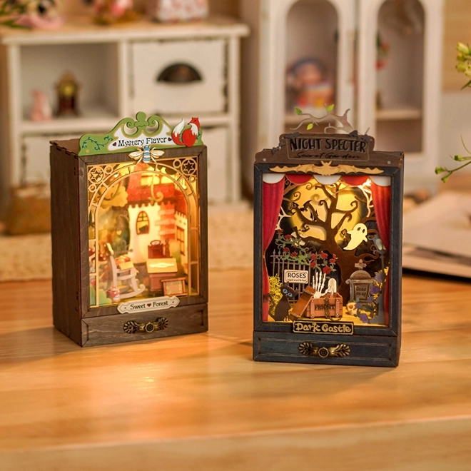 Pregătește-ți scena și joacă reprezentații magice în dioramele tale de măsuță. Acest teatru miniatural este echipat cu iluminare LED caldă, care adaugă adâncime și atmosferă scenetei tale. Panourile glisante ascunse din plastic transparent îți protejează decorul de praf.