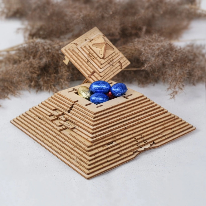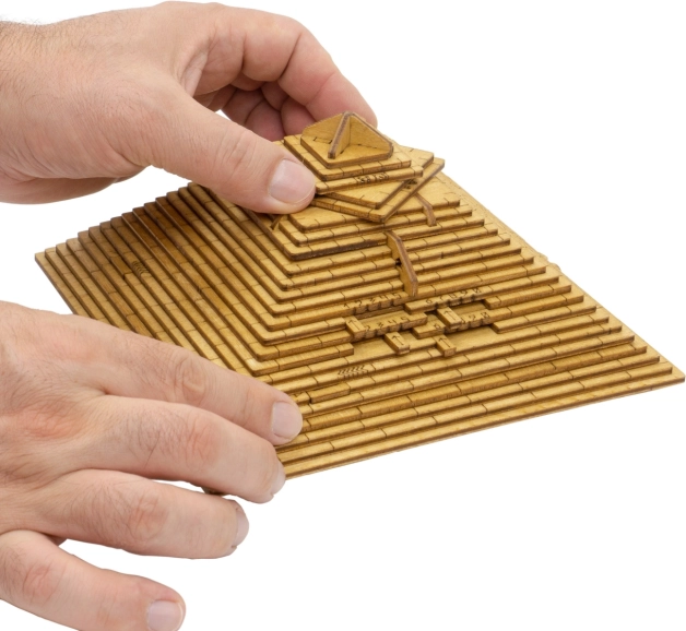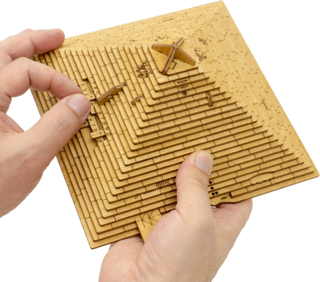 Puzzle-ul piramidal este accesoriul perfect pentru toți iubitorii de jocuri de evadare. Acest joc detaliat oferă nu doar sarcini logice fascinante, ci și o atmosferă istorică. Fabricat din lemn european de calitate, puzzle-ul vă va duce în adâncurile piramidelor egiptene, unde trebuie să depășiți o serie de capcane inteligent concepute.