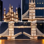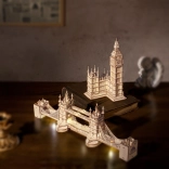 Descoperă atmosfera Londrei cu un model realist Tower Bridge din placaj de calitate. Piesele se îmbină perfect, astfel încât construcția este cursivă și plăcută. Iluminarea LED integrată oferă construcției finale o notă plăcută de seară și pune în valoare detaliile arhitecturale atent gândite.