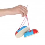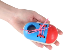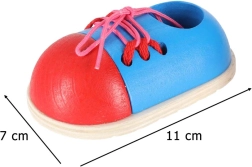 Un instrument distractiv și practic pentru copiii care învață să-și lege șireturile. Două pantofișori compacți din lemn dezvoltă motricitatea fină, gândirea logică și independența. Datorită construcției solide din lemn și dimensiunilor reduse, sunt ideali atât acasă, cât și în călătorii.