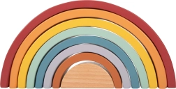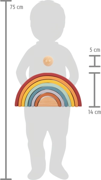 Acest curcubeu din lemn oferă o oportunitate excelentă pentru copii să își dezvolte imaginația și abilitățile motorii. Include 8 arcuri colorate și o bilă de lemn care poate fi folosită ca instrument educativ pentru înțelegerea dimensiunilor și a culorilor. Jucăria este fabricată în conformitate cu pedagogia Montessori și este ideală pentru joacă liberă.