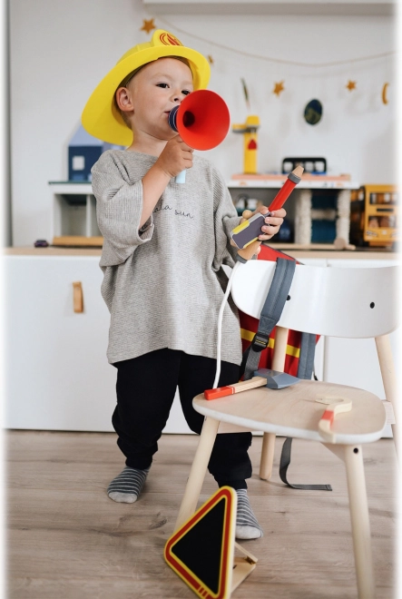 Setul include un „furtun” din lemn și o pompă cu care copiii „sting” cu ușurință orice flacără. Stimulează imaginația și dezvoltarea motricității fine.