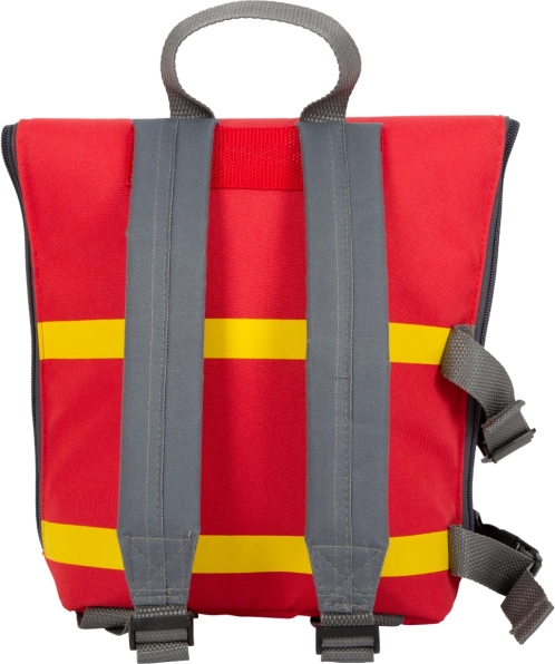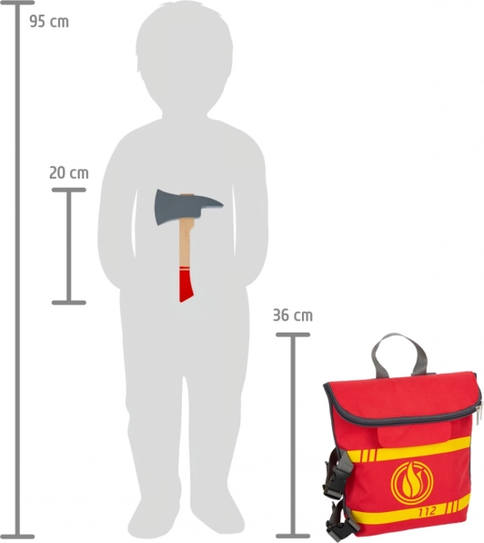 Pornește la intervenție cu echipare completă! Acest rucsac de pompier pentru copii small foot, în culori de urgență, oferă bretele ajustabile, deschidere largă cu fermoar dublu și mult spațiu de depozitare pentru accesorii din lemn și plastic. Datorită cataramelor cu clips se pot fixa ușor accesorii suplimentare, iar super dotarea este pompa de incendiu de jucărie pentru un joc realist de pompieri.
