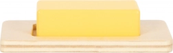 - tocător (o față tip tablă pentru cretă) cu orificiu pentru agățare, cuțit din lemn, roșie, castravete, morcov, măr, banană, bucată de brânză, salam, unt, produse de panificație; piese unite cu arici (scai)