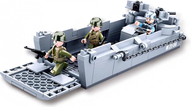 Sluban Army barcă de debarcare din Al Doilea Război Mondial este un set de construcție detaliat pentru micii și marii constructori. Cu elemente realiste, rampă funcțională și un set de accesorii, poți crea cu ușurință scene militare autentice. Datorită plasticului ABS robust, modelul rezistă la joacă intensă și la asamblări repetate.