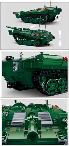 Design fidel cu multe detalii, inclusiv șenile și profilul redus al legendarului „S-tanc”. După asamblare, modelul măsoară 25,4 cm în lungime.