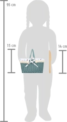 Plecați la picnic cu familia! Cu acest coș de picnic, care include tot ce este necesar pentru două persoane, orice excursie în curte sau în natură va fi o experiență unică. Coșul este un accesoriu grozav pentru copii, deoarece încurajează imaginația și creativitatea în jocurile de rol. Veți găsi în el farfurii, cuțite și alimente din lemn, care rămân împreună datorită bandelor de tip scai. Căptușeala interioară se poate curăța ușor, adăugând la practicabilitate.