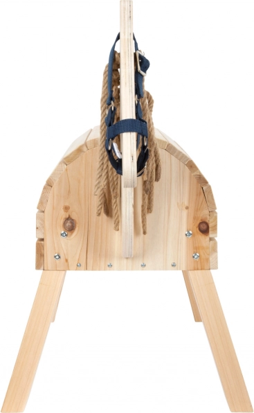 Calul din lemn este construit pe picioare robuste, care asigură stabilitate și siguranță în timpul jocului. Datorită acestei construcții, este potrivit pentru copiii de la 3 ani.