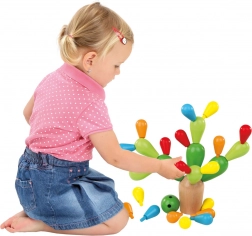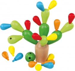 Copiii așază „lăstarii” colorați pe baza din lemn și caută echilibrul, pentru ca cactusul să nu se răstoarne. Datorită formelor netede și rotunjite, piesele se prind și se așază ușor. Jocul dezvoltă răbdarea, planificarea și simțul echilibrului.