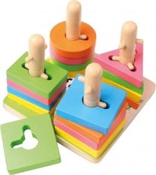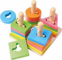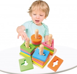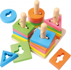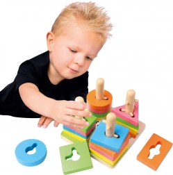 Piesele geometrice colorate cu decupaje îi conduc pe copii către recunoașterea naturală a formelor și culorilor, dezvoltând în același timp logica și concentrarea.