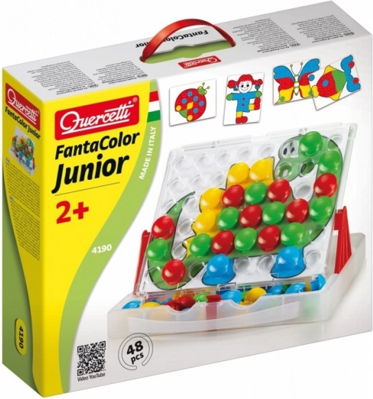 Descoperiți mozaicul creativ QUERCETTI FANTACOLOR JUNIOR, care dezvoltă imaginația copiilor și motricitatea fină. Datorită pionilor mari, copiii îi pot manipula ușor, valiza practică păstrează totul la un loc, iar cele 8 șabloane față-verso inspiră la creație. Jucăria sprijină recunoașterea culorilor, coordonarea mână–ochi, concentrarea și răbdarea.