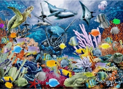 Puzzle Marea Pestră de la Brain Tree este pentru toți cei care vor să se bucure de o aventură sub apă. Cu 1000 de piese de diferite forme, veți savura asamblarea cu un aer de originalitate. Finisajul mat garantează că toate detaliile imaginii sunt vizibile excelent chiar și cu o iluminare variată. Fiecare piesă este unică nu doar prin formă, ci și rezistentă la uzură.