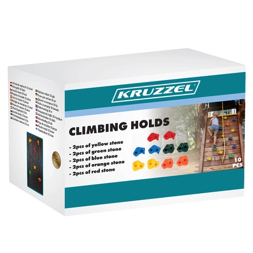 Prizele KRUZZEL se montează cu 2 șuruburi, ceea ce previne rotirea lor și crește siguranța la utilizare. Suprafața texturată, antiderapantă oferă siguranță pentru mâini și picioare. Formele și dimensiunile variate permit mai multe opțiuni de prindere în funcție de modul de apucare. Excelente pentru construirea pereților de cățărat, a scărilor, turnurilor și a altor structuri.