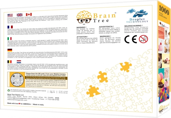 În pachet găsești tot ce ai nevoie pentru o asamblare confortabilă: poster cu aceeași calitate ca imaginea de pe puzzle, mai multe tăvițe din carton pentru sortare, suport pentru capacul cutiei pentru o mai bună vizibilitate și, la setul de 1000 de piese, și punguță rezistentă cu fermoar pentru depozitarea sigură a pieselor.